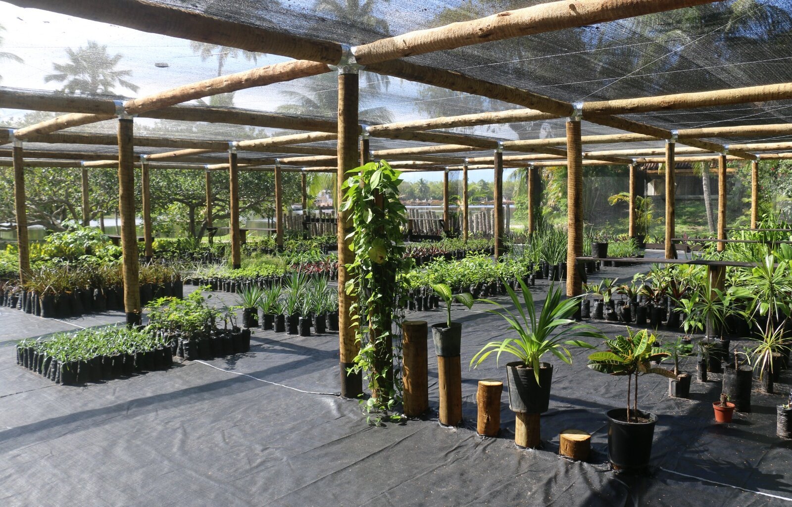 Com 350m² de área e 2.650 mudas de 59 espécies — muitas delas resgatadas da área do antigo Club Med — o Viveiro Educador nasce com a proposta de ser uma “sala de aula viva” para a comunidade de Vera Cruz, Itaparica e região. O espaço recebe estudantes para trilhas ecológicas com painéis interativos, onde é possível aprender sobre a fauna local e atravessar uma ponte com vista para um lago natural até chegar ao viveiro, onde espécies nativas e exóticas se tornam ferramentas de educação ambiental.