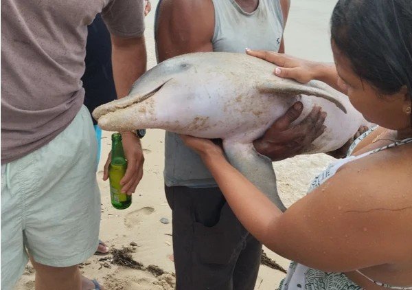 Em um dos vídeos publicados, uma mulher aparece segurando o corpo do golfinho, enquanto é cercada por outras pessoas, entre elas um funcionário da Empresa de Limpeza Urbana de Salvador (Limpurb). “Acabou de aparecer um golfinho na praia de São Tomé de Paripe ainda agora. Ficamos tristes por estar já morto e queríamos saber por quê”, escreveu a autora da postagem.