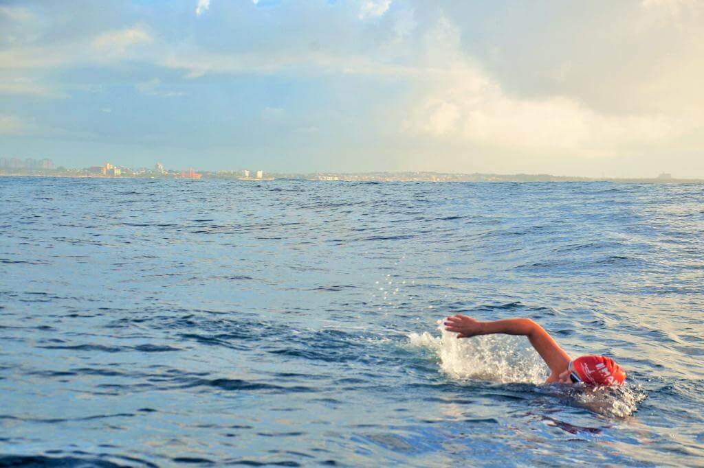 Paulista mas com coração baiano, a nadadora e ultramaratonista Alessandra Melo ou apenas ‘Leca’, coleciona histórias pelos mares de Salvador, especialmente na Baía de Todos os Santos. Ela foi a primeira mulher a completar com sucesso os 60km da travessia Salvador – Morro de São Paulo, partindo do Porto da Barra.