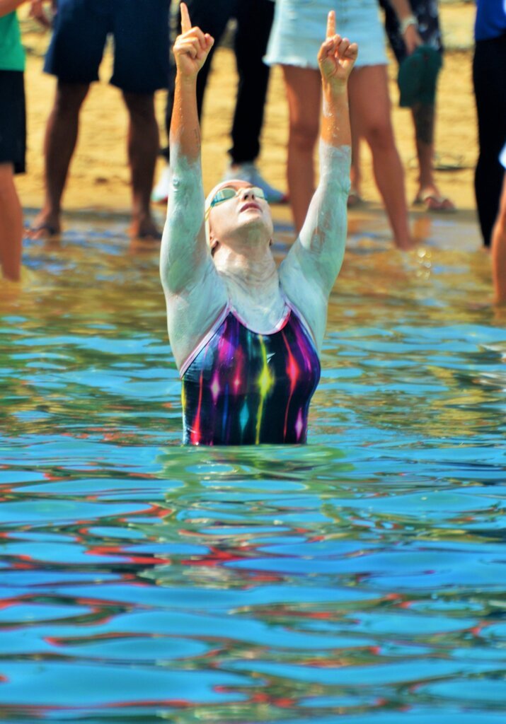 “Eu vivo o agora, o segundo agora. Eu nado por 30 minutos e entro em um estado de silêncio profundo para resetar a mente e me hidratar. Quando preciso parar, é necessário tocar um apito para eu escutar”, explicou.