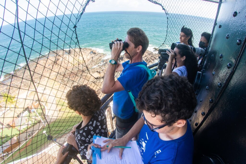 Na última temporada, o Projeto contabilizou mais de 1.000 avistagens a partir de um ponto fixo instalado no Museu Náutico da Bahia, no Farol da Barra. Segundo o coordenador do Projeto em Salvador, Gustavo Rodamilans, a localização é estratégica não apenas pelo amplo campo de visão, mas por permitir uma conexão direta com o público. “Além do monitoramento, o espaço também é usado para ações de ciência cidadã e educação ambiental. No ano passado, recebemos mais de 60 mil visitantes e atendemos 5 mil alunos de 120 escolas”, destaca.